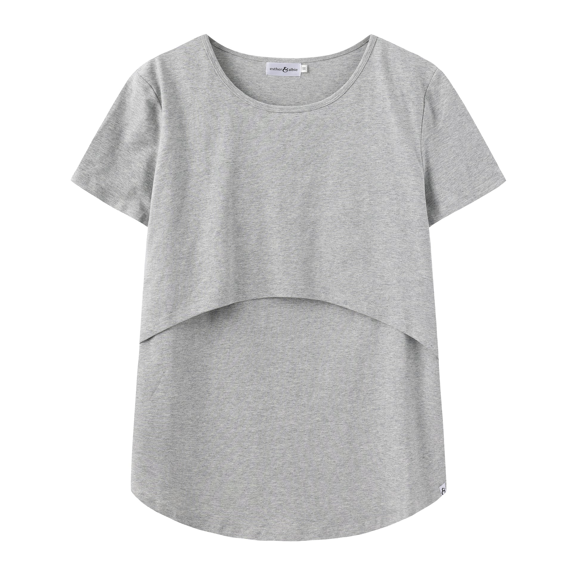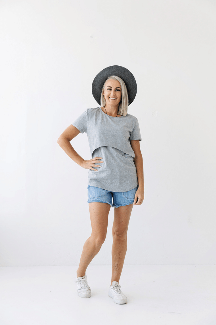 The grey classic breastfeeding tee is a simple and classic staple that will see you through your breastfeeding journey. It is made of 95% cotton and 5% spandex. It has discrete flap access at the front for feeding.