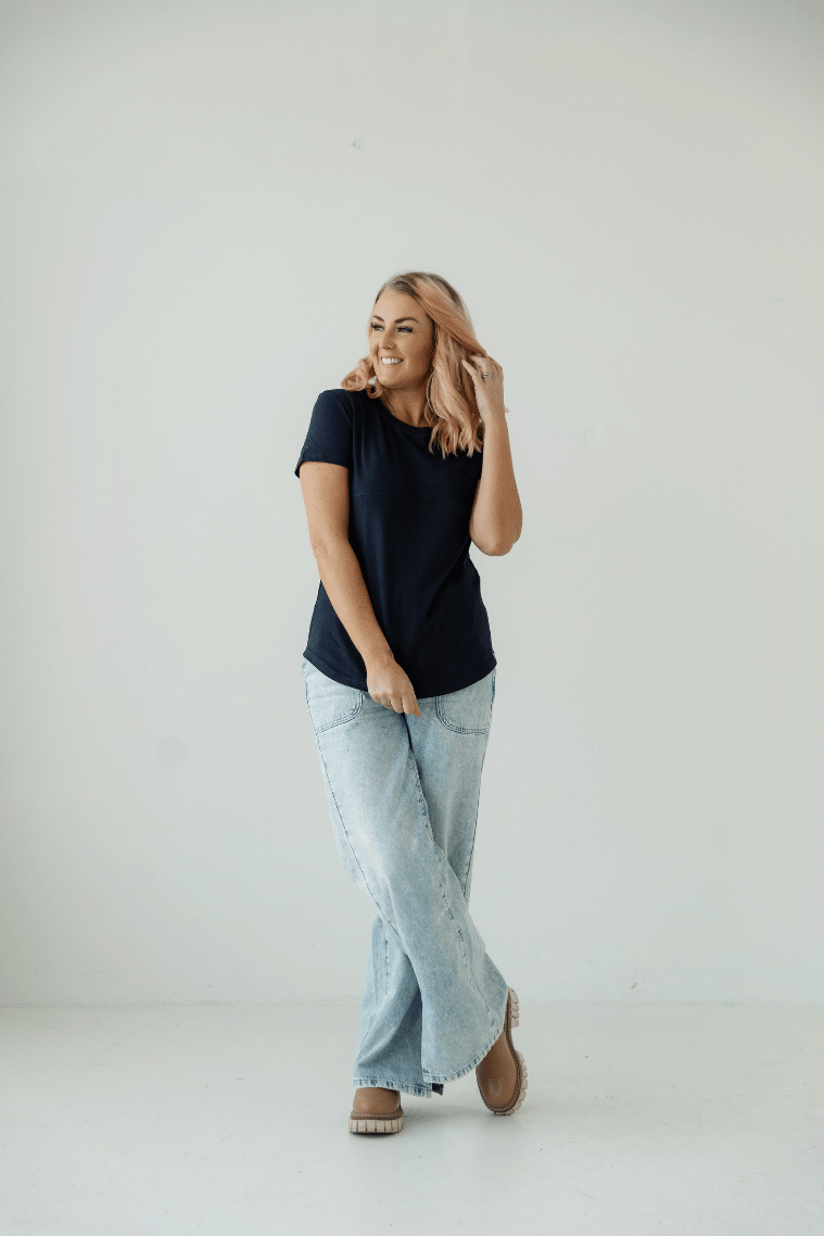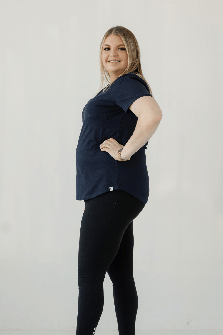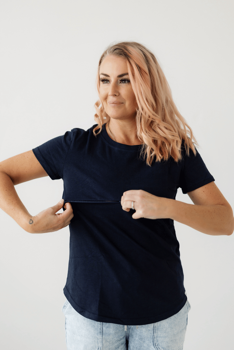 Got big boobs? This is the breastfeeding tee for you! The horizontal zip breastfeeding tee is a simple and classic staple that will see you through your breastfeeding journey. It is made of 100% cotton. It has discrete zip access on both sides for feeding. Available in 8 colours!