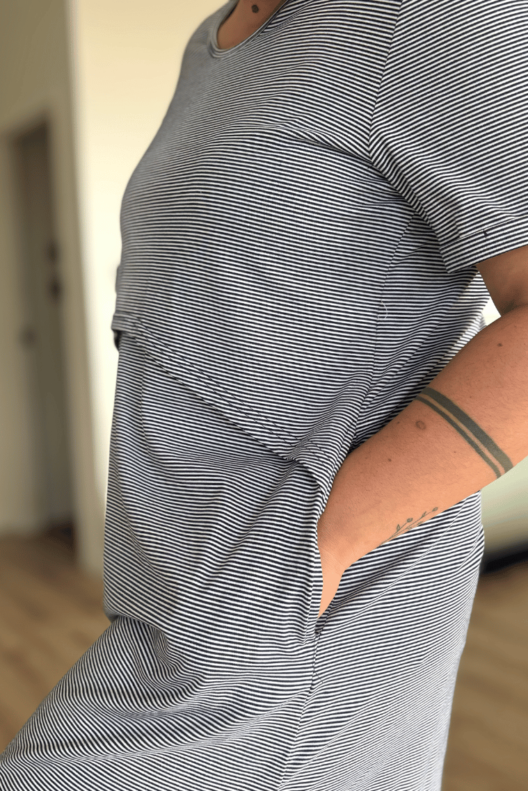 Did someone say pockets?! This stripe breastfeeding dress is the perfect blend of comfort, function, and fun—designed to be your go-to piece this winter and beyond.